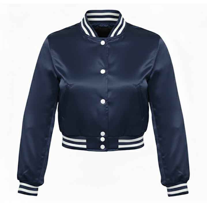 Stylish Vintage Women’s Varsity Letterman Baseball Satin Jacket Navy